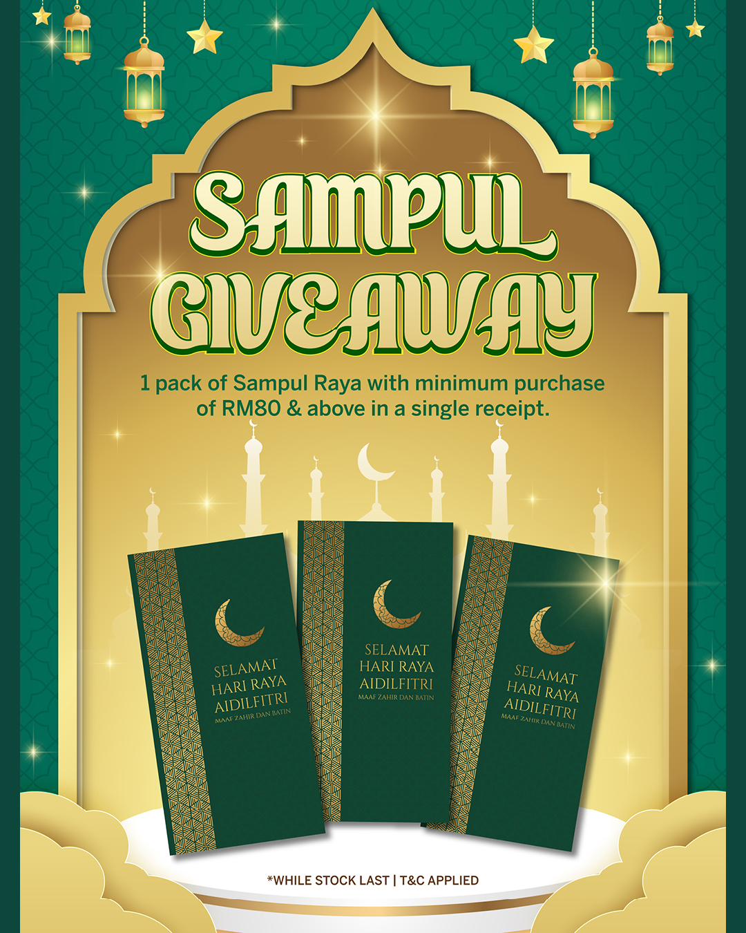 Event Highlights Raya Sampul Giveaway 15 February 2026 Receive 1 pack of Raya sampul with a minimum RM80 purchase in a single receipt — our festive gift to brighten your celebrations. Prev Next